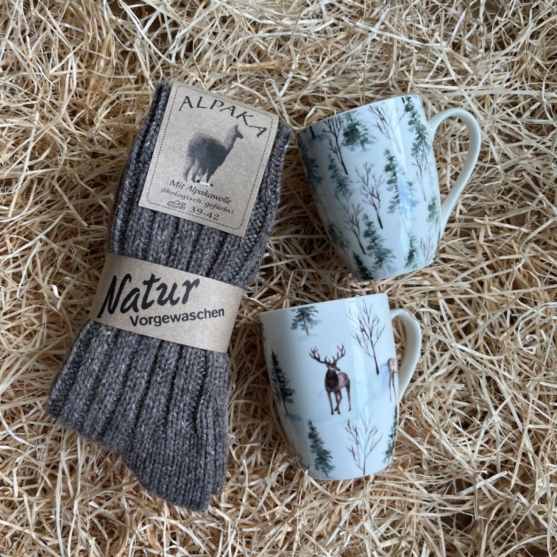 Heerlijke warme sokken en twee winterse mokken maken dat dit pakket heerlijke warmte zal geven!