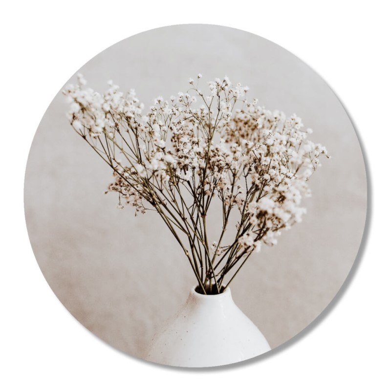 Breng een vleugje verfijning en natuurlijke charme in je interieur met de Gipskruid muurcirkel. Dit elegante ontwerp, met een gedetailleerde print van gipskruid, voegt een subtiele en verfijnde touch toe aan elke ruimte in je huis.